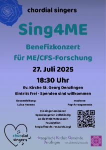 Am 27. Juli 2025 fand in der Georgskirche in Denzlingen das Benefizkonzert Sing4ME der Chordial Singers zu Gunsten der ME/CFS Forschung statt.